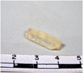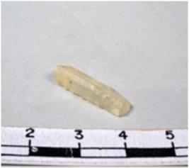 | Description / विवरण | A fragment of a rectangular shaped chert blade showing dorsal sides with sharp edges having smooth surface and triangular section. |