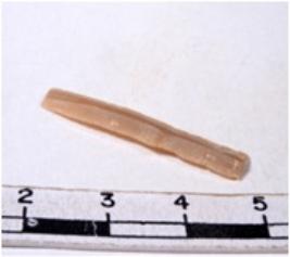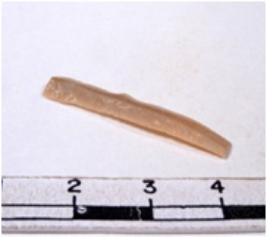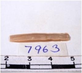| Description / विवरण | A fragment of a rectangular shaped chert blade showing dorsal sides with sharp edges having smooth surface and triangular section. |