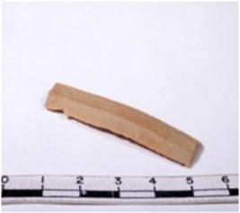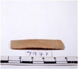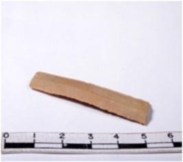 | Description / विवरण | A fragment of a rectangular shaped chert blade showing parallel sides with sharp edges having smooth surface and uneven section. |