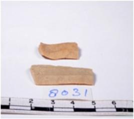 | Description / विवरण | A fragment of a rectangular shaped chert blade showing dorsal sides with sharp edges having smooth surface and triangular section. |