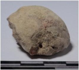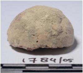 | Description / विवरण | A fragment of a stone sling ball, circular in section of rough surface. |
