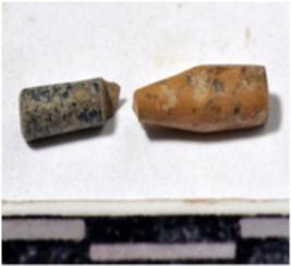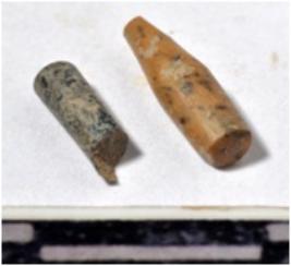 | Description / विवरण | A fragment of a stone drill bit, circular in section, broken from both ends of rough surface. |