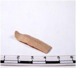 | Description / विवरण | A fragment of a rectangular shaped chert blade showing dorsal sides with sharp edges having smooth surface and triangular section. |