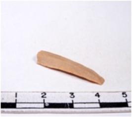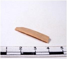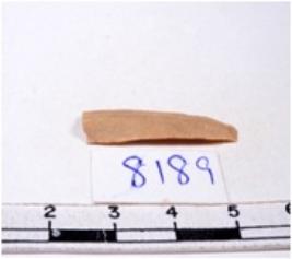 | Description / विवरण | A fragment of a rectangular shaped chert blade showing dorsal sides with sharp edges having smooth surface and triangular section. |