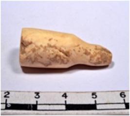 | Description / विवरण | A cylindrical shaped shell stopper showing pointed on one end having glossy surface. |