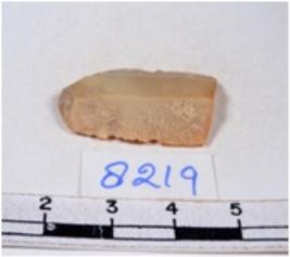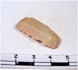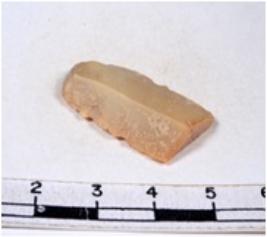 | Description / विवरण | A fragment of a rectangular shaped chert blade showing dorsal sides with sharp edges having smooth surface and triangular section. |