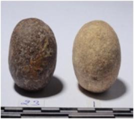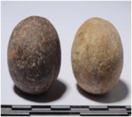| Description / विवरण | A stone sling ball round in shape of rough surface. |