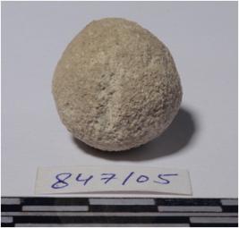 | Description / विवरण | A stone sling ball round in shape of rough surface. |