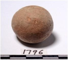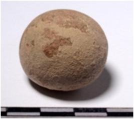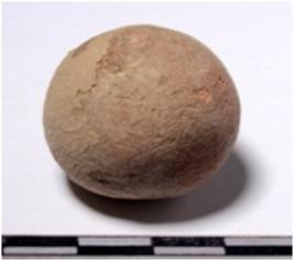 | Description / विवरण | A terracotta sling ball round in shape of smooth surface. |