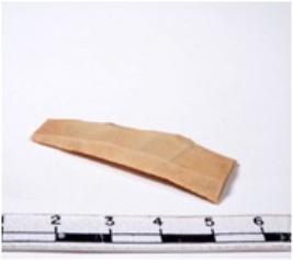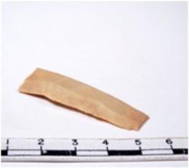 | Description / विवरण | A fragment of a rectangular shaped chert blade showing dorsal sides with sharp edges having smooth surface and triangular section. |