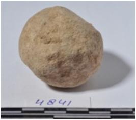 | Description / विवरण | A stone sling ball round in shape of rough surface. |