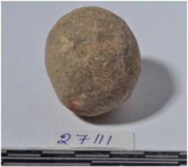 | Description / विवरण | A stone sling ball round in shape of smooth surface. |