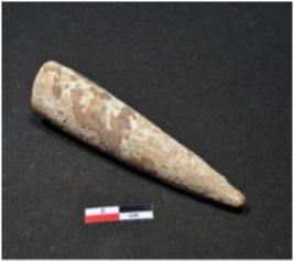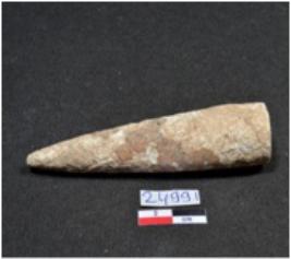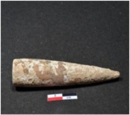 | Description / विवरण | A long sized shell point showing conical in shaped, pointed on end, having rough surface. |