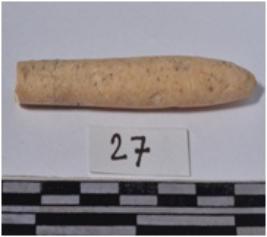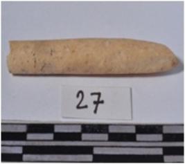 | Description / विवरण | A fragment of a bone point having pointed one side, circular in section of smooth surface. |