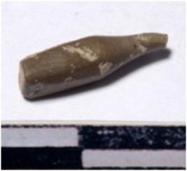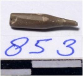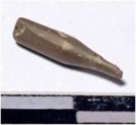 | Description / विवरण | A fragment of a stone drill bit circular in section pointed on end of smooth surface. |