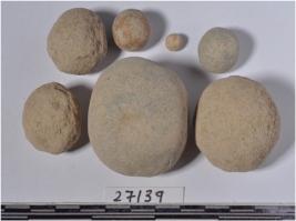 | Description / विवरण | Stone sling balls, round in shape of rough surface. |