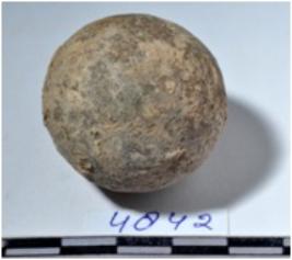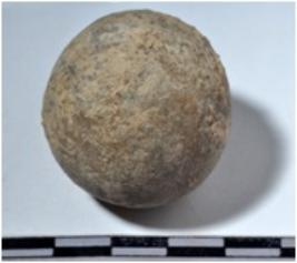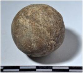 | Description / विवरण | A stone sling ball round in shape of rough surface. |
