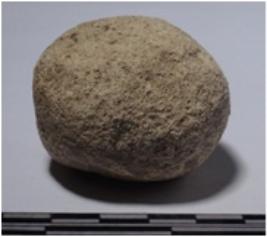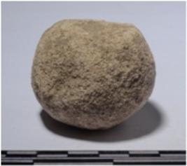 | Description / विवरण | A stone sling ball round in shape of rough surface. |