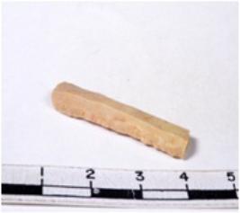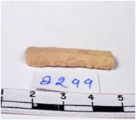 | Description / विवरण | A fragment of a rectangular shaped edges blade showing parallel sides with sharp edges having smooth surface and uneven section. |
