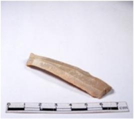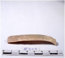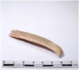 | Description / विवरण | A fragment of a rectangular shaped chert blade showing dorsal sides with sharp edges having smooth surface and triangular section. |