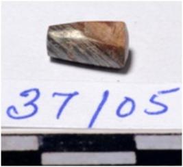 | Description / विवरण | A fragment of a stone drill bit circular in section broken from both end of smooth surface. |