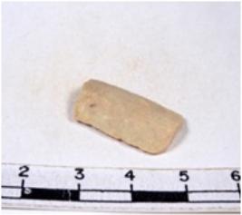 | Description / विवरण | A fragment of a rectangular shaped chert blade showing dorsal sides with sharp edges having smooth surface and triangular section. |