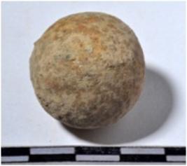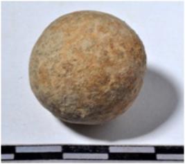| Description / विवरण | A stone sling ball round in shape of rough surface. |