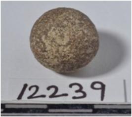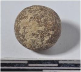 | Description / विवरण | A small stone sling ball round in shape of smooth surface. |