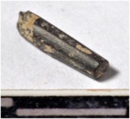 | Description / विवरण | A fragment of a stone drill bit, circular in section, broken from both ends of smooth surface. |