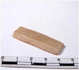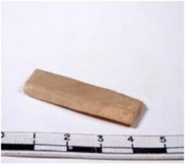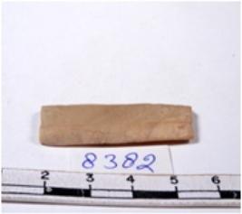 | Description / विवरण | A fragment of a rectangular shaped chert blade showing dorsal sides with sharp edges having smooth surface and triangular section. |