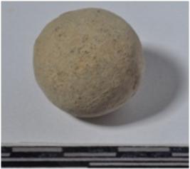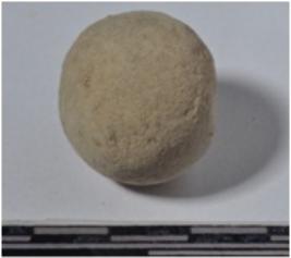 | Description / विवरण | A small stone sling ball round in shape of rough surface. |