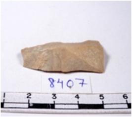 | Description / विवरण | A fragment of a rectangular shaped chert blade showing parallel sides with sharp edges having smooth surface and uneven section. |