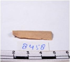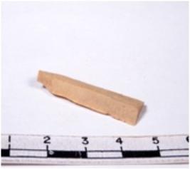 | Description / विवरण | A fragment of a rectangular shaped chert blade showing dorsal sides with sharp edges having smooth surface and triangular section. |