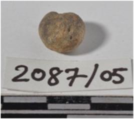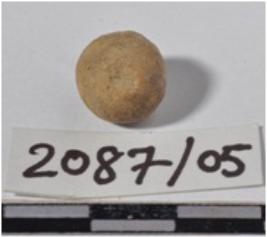 | Description / विवरण | A fragment of a terracotta sling ball having circular in section of smooth surface. |