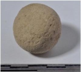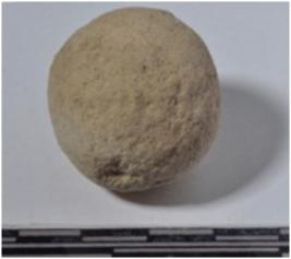 | Description / विवरण | A stone sling ball round in shape of rough surface. |