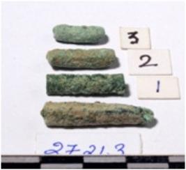 | Description / विवरण | A fragment of a copper rod broken from both end circular in section of rough surface. |