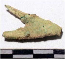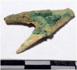 | Description / विवरण | A fragment of a copper arrow head triangular in shape having pointed on one end of rough surface. |