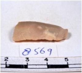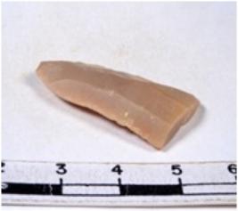 | Description / विवरण | A fragment of a rectangular shaped chert blade showing dorsal sides with sharp edges having smooth surface and triangular section. |
