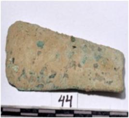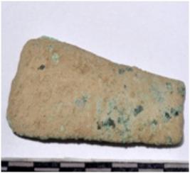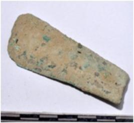| Description / विवरण | A fragment of a copper chisel, spactual like shaped of rough surface. |