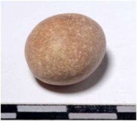 | Description / विवरण | A stone sling ball oval in shape of smooth surface. |