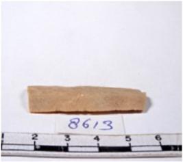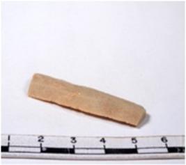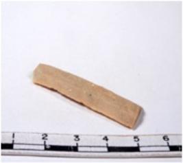 | Description / विवरण | A fragment of a rectangular shaped chert blade showing parallel sides with sharp edges having smooth surface and triangular section. |