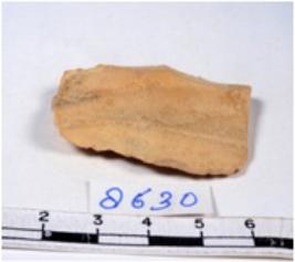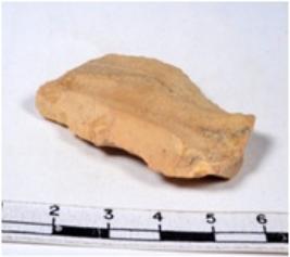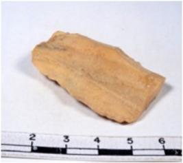 | Description / विवरण | A fragment of a rectangular shaped chert blade showing dorsal sides with sharp cutting edges having smooth surface and triangular section. |