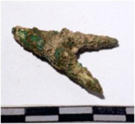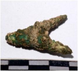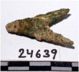 | Description / विवरण | A copper triangular shaped arrow head, pointed one end, rectangular in section of rough surface. |