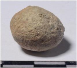 | Description / विवरण | A stone sling ball, round in shape of rough surface. |