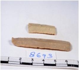| Description / विवरण | A fragment of a rectangular shaped chert blade showing parallel sides with sharp edges having smooth surface and uneven section. |