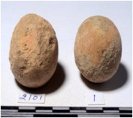 | Description / विवरण | A stone sling ball round in shape of rough surface. |