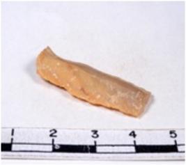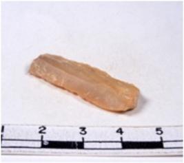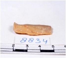 | Description / विवरण | A fragment of a rectangular shaped chert blade showing dorsal sides with sharp edges having smooth surface and triangular section. |