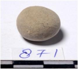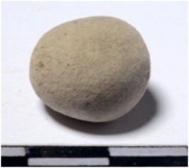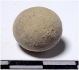 | Description / विवरण | A terracotta sling ball round in shape of smooth surface. |