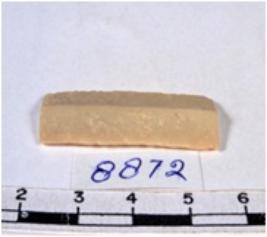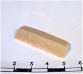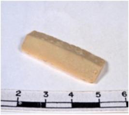 | Description / विवरण | A fragment of a rectangular shaped chert blade showing dorsal sides with sharp edges having smooth surface and triangular section. |