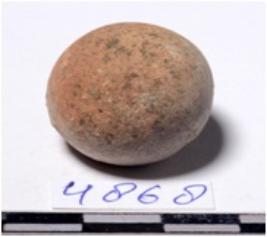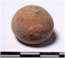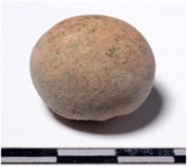 | Description / विवरण | A terracotta sling ball round in shape of smooth surface. |